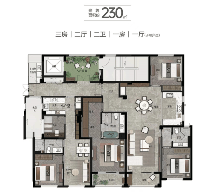 230㎡子母户型3房2厅2卫/1房1厅1卫▼