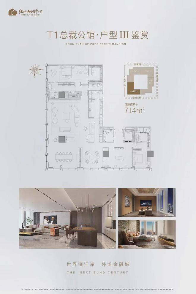 外滩·天幕1715售楼处电话:400-9699-334✨【官方认证】✅✅✅位于上海外滩金融集聚带核心区,是绿地外滩中心T1塔楼38-45层的顶级行政公馆,限量28席。项目以300米超高层云端大平层为载体,建面约713-799㎡,层高4.5米,配备2万/㎡豪华装修,总价约1亿起。户型设计融合商务与私人社交功能,涵盖江景会客厅、中西双厨、独立收藏区等,配备欧洲奢侈品牌装甲门、智能家居及空调、新风、地暖系统。项目毗邻丽思卡尔顿酒店,可享五星配套,包括空中无边泳池、宴会厅等,是塔尖人群的理想居所。