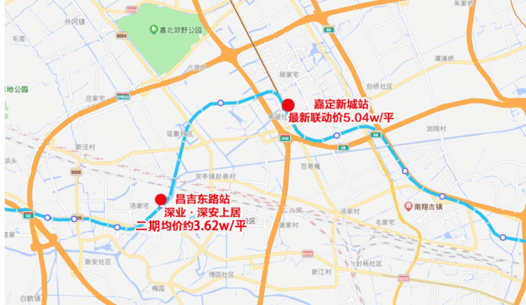 随着去年房地联动价的调整,涨价趋势明显。往前两站的嘉定新城站,在去年土拍中,嘉定新城G09-2地块的联动价攀上5.04万/m²。也就是说,未来想在嘉定买百平米新房,上车门槛直接提升了一个档次。