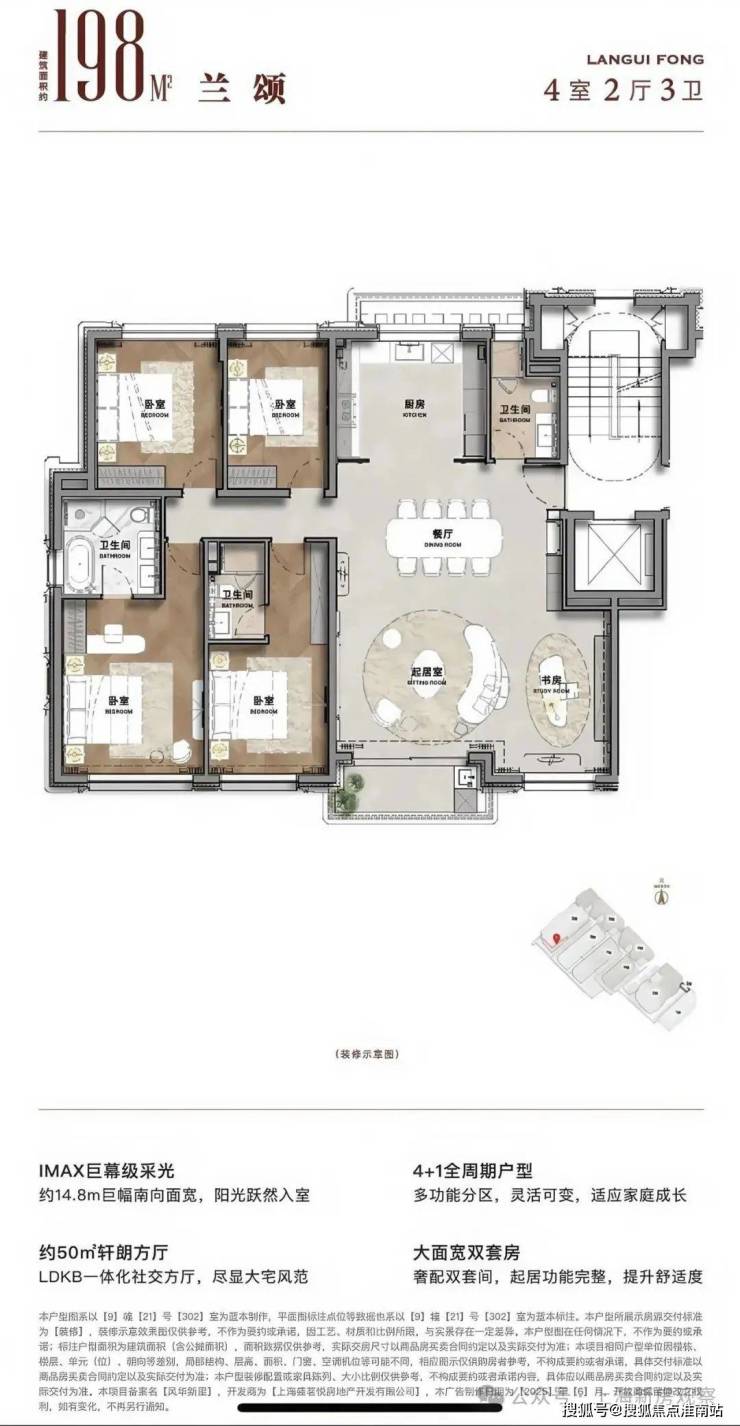 据悉「蘭桂坊855」33席传世宅邸,一席一定制,一栋一永恒,其中18套建筑面积约89-174-198㎡洋房,15席约180-240m²新城市别墅,敬邀全球藏家私赏。建筑面积约198m²4房2厅3卫【海派法式美学样板】现已惊艳亮相共迎品鉴!