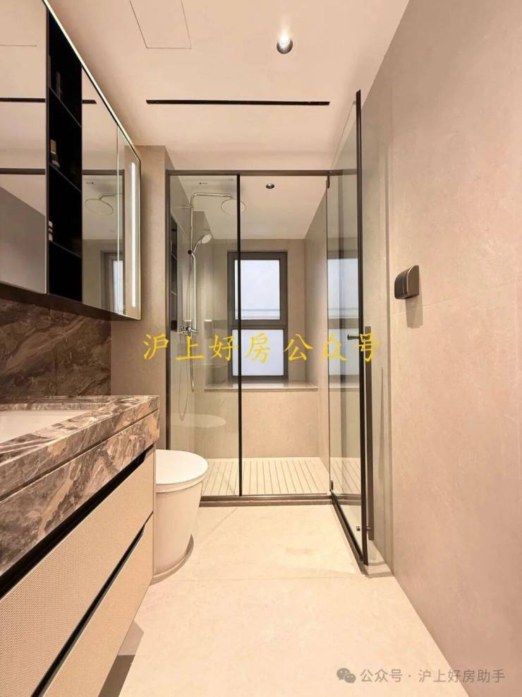 约19米四开间朝南,南北通厅设计,十字中轴洄游动线,演绎云端平墅藏品;双套房全明卫设计,大幅提升居者生活品味与格调;主卧预留步入式宽敞衣帽间,双台盆设计,浴缸冲淋设施齐备,满足男女主人各自所需。