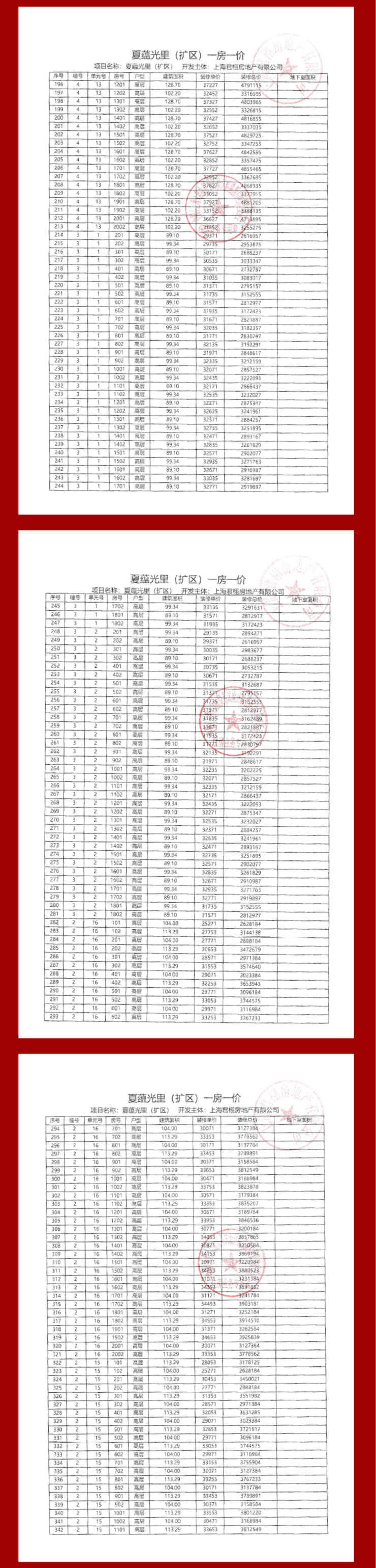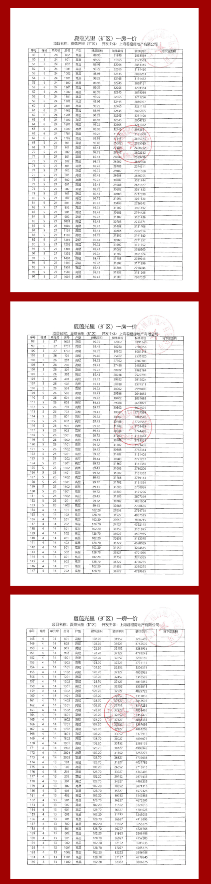 项目一房一价表