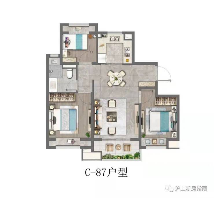 建面约87㎡3房2厅1卫️