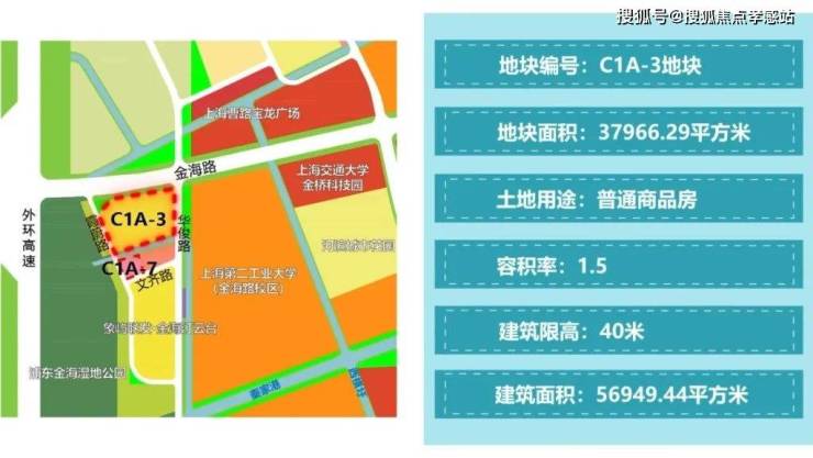 C1A-3地块:普通商品房用地,占地面积约37966㎡,容积率1.5,限高40米,计容面积约56949㎡;