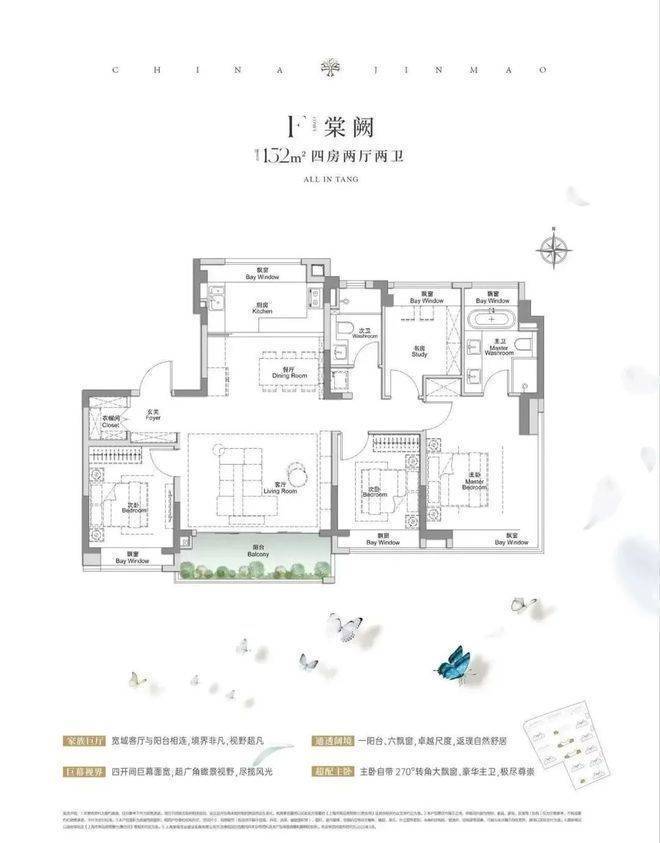 主卧带270°转角飘窗+卫生间,金茂棠前售楼处电话☎:400-8787-740【预约☎】拥有寰宇级瞰景视野,让业主有更好的私密性和生活舒适度。