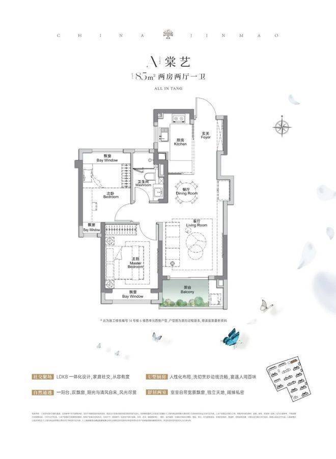 建面约97㎡3房2厅1卫,金茂棠前售楼处电话☎:400-8787-740【预约☎】户型三开间朝南、再加上“3个飘窗+双面阳台系统”,不管是采光、视野、通风、私密性,还是实用性都十分出色。