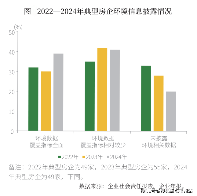 在披露指标的口径方面,房企间环境数据统计范围仍存在较大差距,无法有效体现房企经营过程中的温室气体排放总量、废弃物排放量、耗水量等信息。