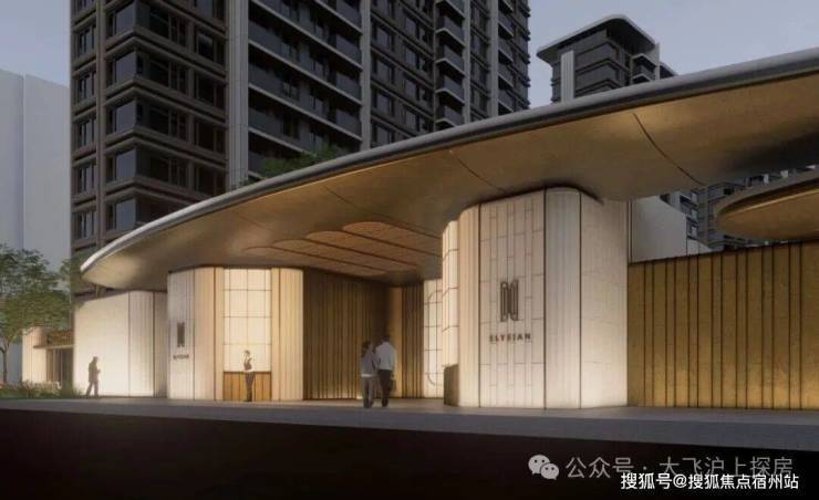 蓝灰色玻璃+仿石铝板+艺术涂料材质,穿插优雅线条,让建筑这张“脸”看起来更高级.One&Only酒店式门头.用雕塑体块、温润弧面和雅致线条,营造具有艺术格调的归家仪式感.