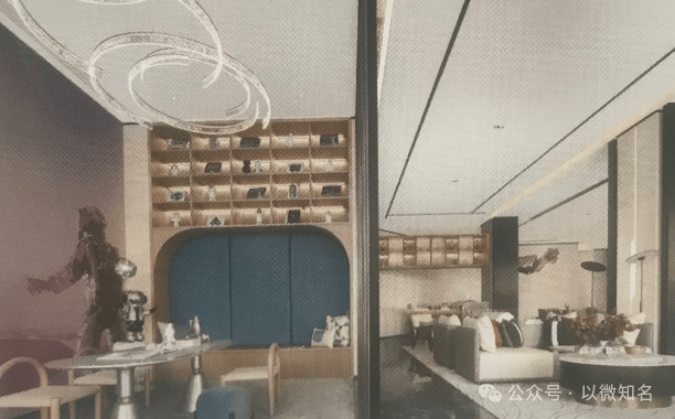 售楼处设计:空间设计将水系与道路的结合,以再现周边环境的动态氛围,映射出"人类对自然的改造与结合"的概念之余,凸显整体的人文气质;强调现代审美,并将科技元素融入其中,营造出沉浸体验式的艺术售楼空间。