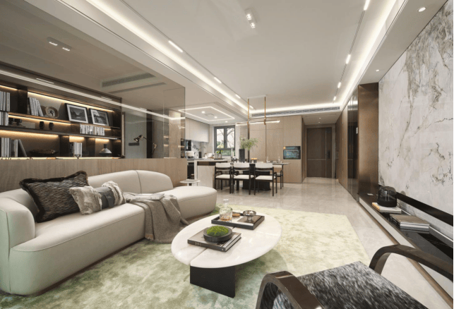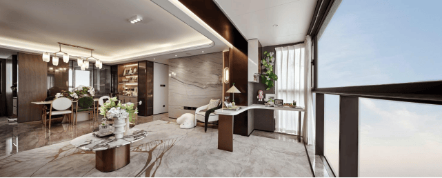 在这里,居住者可以将功能房打造为书房/琴房等,为自己带来放松身心的私享空间。同时,也可以将其拓展,成为约6.2米面宽的超级会客厅,尽可能延伸出更大的社交场地。