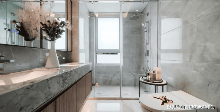 此外,3.15米的层高、全屋墙纸交付、皮质电视背景墙、一门到顶的房间门、灶台墙的整块玻璃、卫生间的整块大理石台面等等,看似不起眼的细节,背后都是精湛复杂的工艺和高昂的成本,宝华将自身对产品力的执着体现得淋漓尽致。