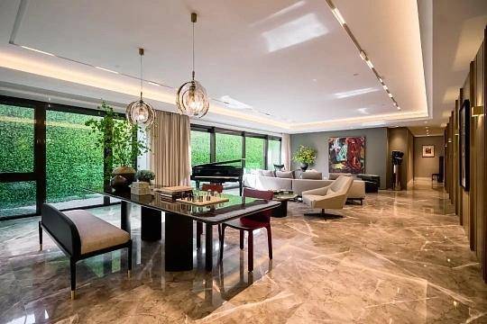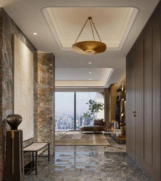 项目设计融合Art Deco风格与海派石库门元素,外立面采用陶板、香槟色铝板及葡萄牙米黄石材,搭配270°弧形观景窗与高性能系统窗,确保隔音、节能与视野的极致体验。高层大平层层高3.3米,得房率超80%;风貌别墅配备私家庭院与独立车库,得房率高达90%,部分户型更设挑高8.2米的客厅与恒温红酒窖,重塑顶奢居住标准。