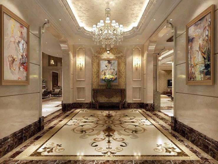 外立面由全天然花岗石材构筑,室内大厅净高19米,气势十分磅礴!厅内10根12米高的古典主义石柱上精细的手工雕刻花纹,总长达2700米,由千人费时一年完成;在大厅南北两端的水晶吊灯,灯管支数更是达到了 5000支! ✨✨上海紫园售楼处热线☎️☎️:400-9966-940✔✔