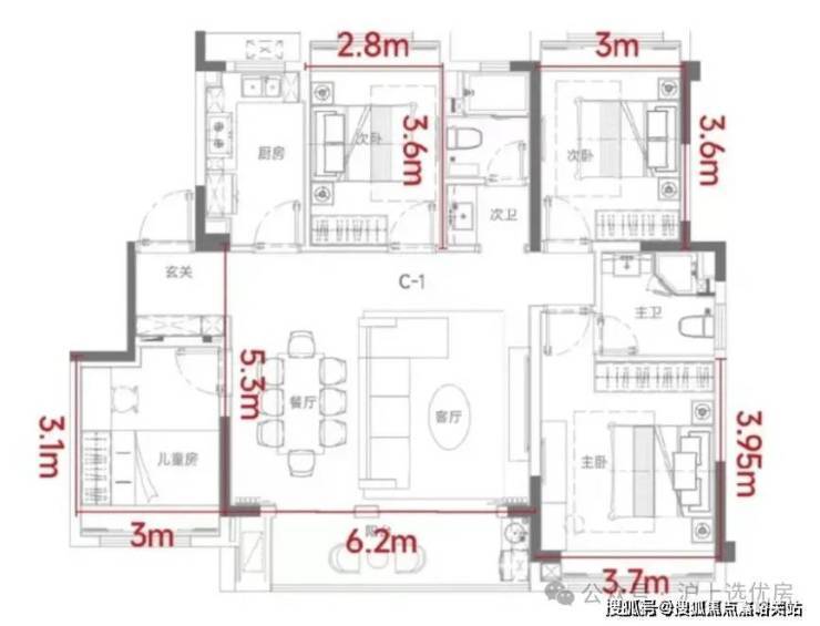 它不仅做到了四房设计,更是做到了6.2米的宽厅,尺度媲美大平层,北向房间还能够放置1.5米的床。