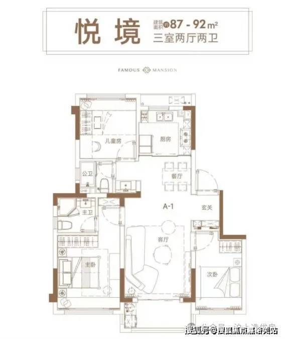 先来看看建面约87-92㎡三房,做到了双卫布局,能完美实现市面上“百平3房”的布局,紧凑户型+超强功能性,让买房人的钱都用在刀刃上!