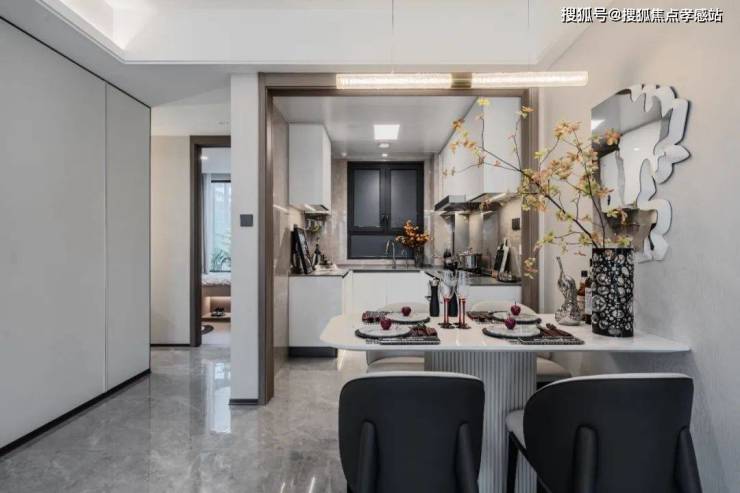 玄关、厨房、卫生间等生活每一个驻足的空间都有随手可得“百宝箱”,餐厅、卧室预留了收纳空间,几乎做到无死角收纳。