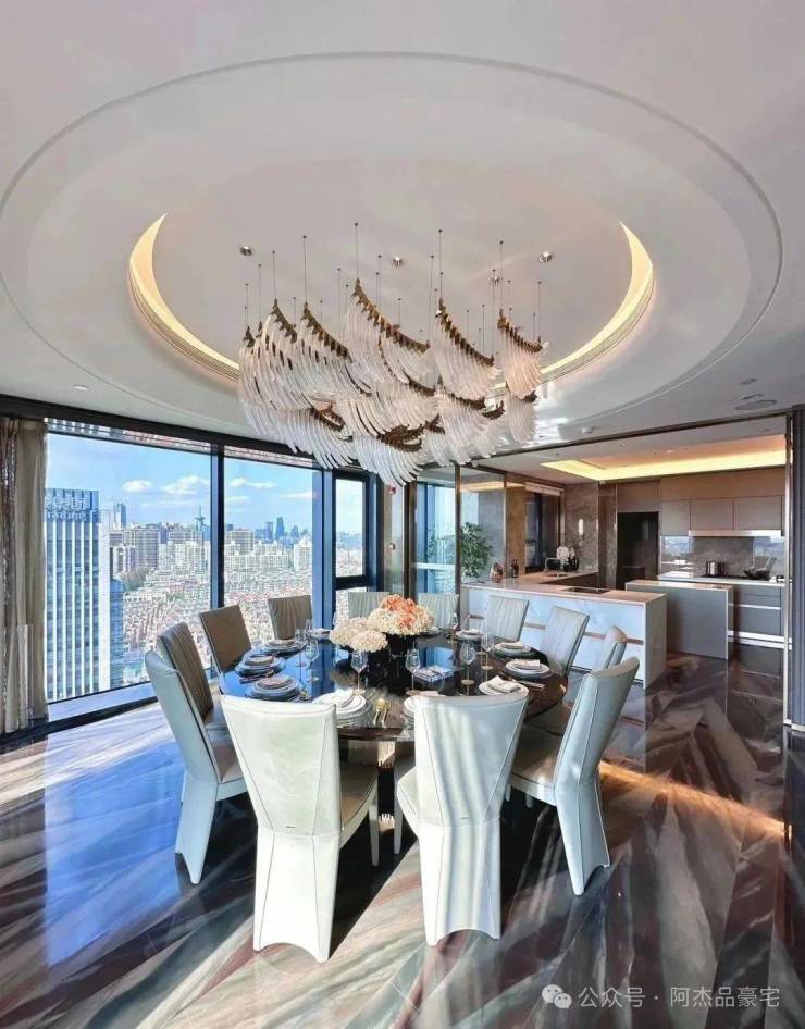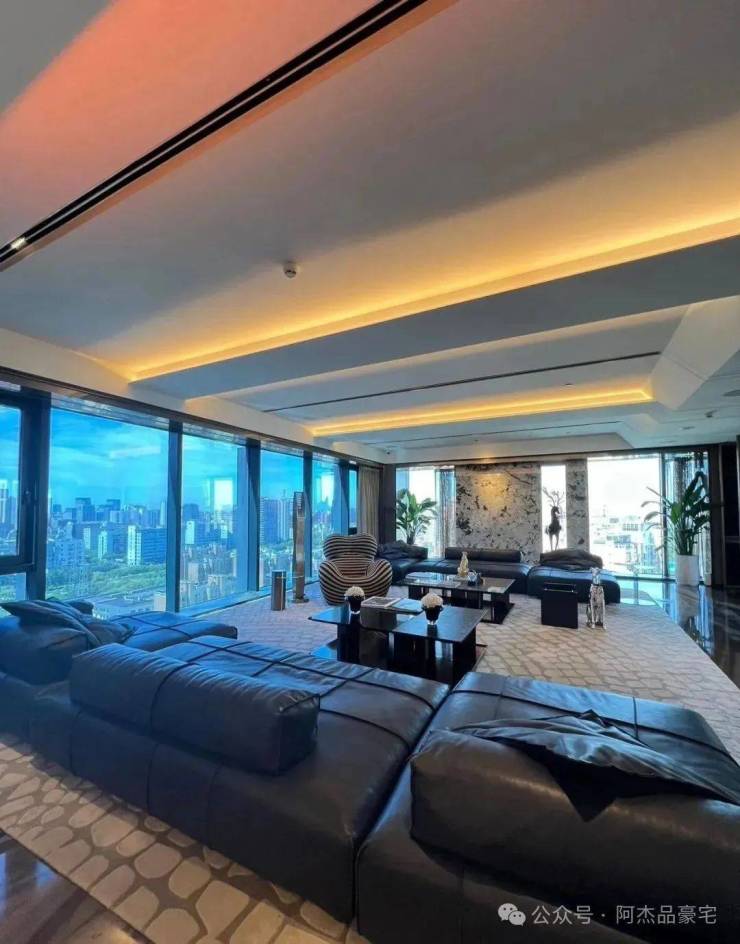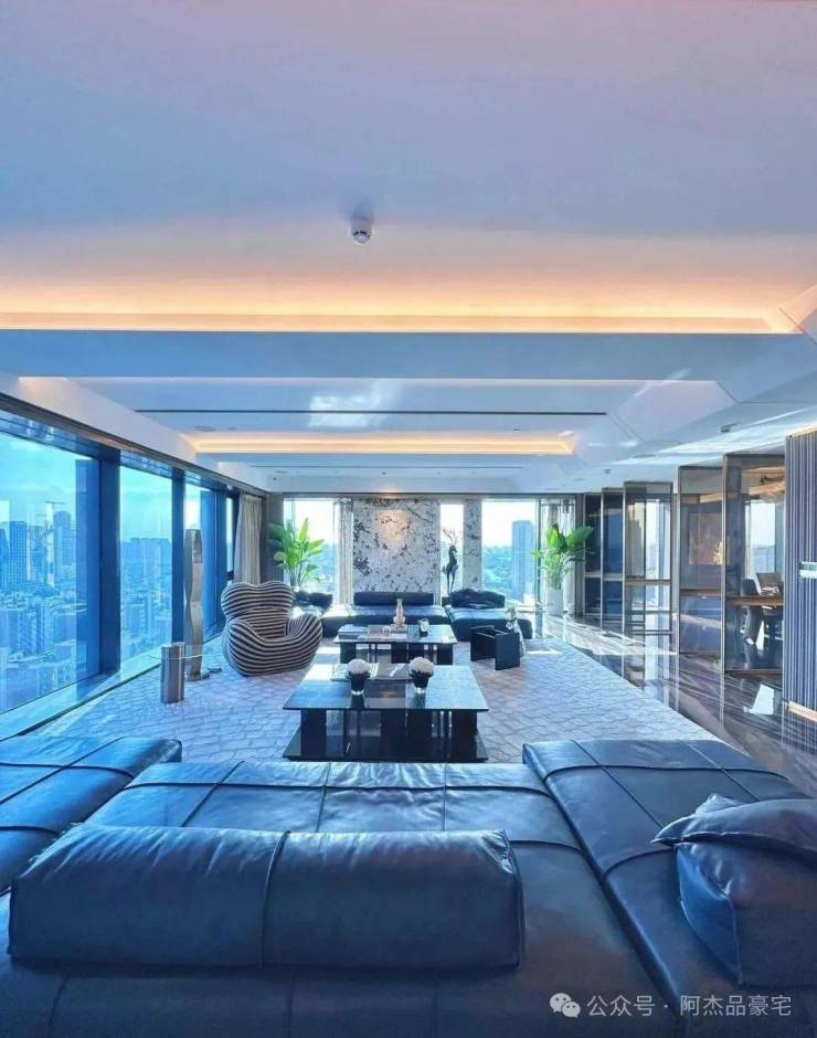 装修上,将时尚与奢华巧妙融入每个角落,所有的窗帘、移门、提升窗、灯光、空调、新风、地暖都可以通过手机远程控制。