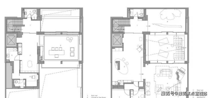 这样的布局提供了多样的就座选择——主客厅区保持其开阔大气,与庭院浑然一体;而配备了吧台并可俯瞰北侧小庭院的休闲室,则营造出温馨私密的氛围。