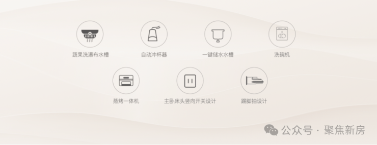 精装标准上,这次保利也是大手笔,标配博世厨电五件套(油烟机、灶具、洗碗机、冰箱、烤箱),卫浴五金配置高仪、科勒的大师款;洁具采用了唯宝等百年奢牌,奢华感与分量感十足!