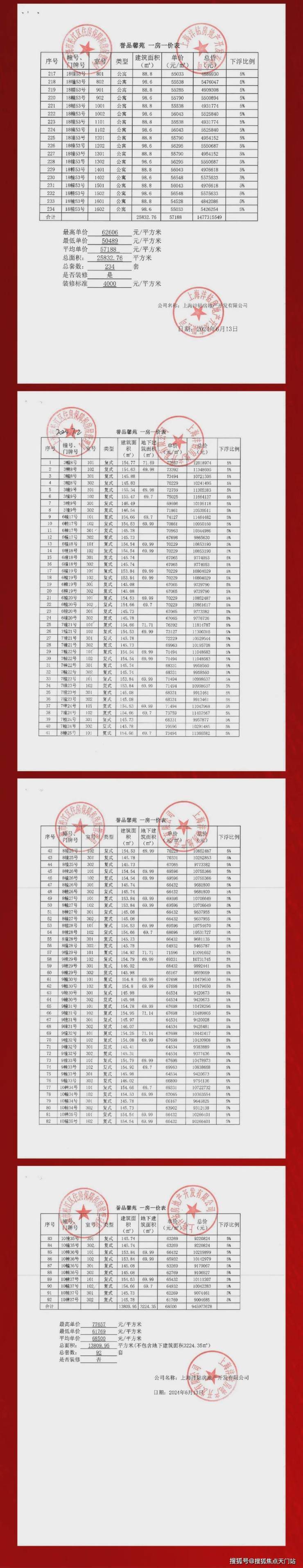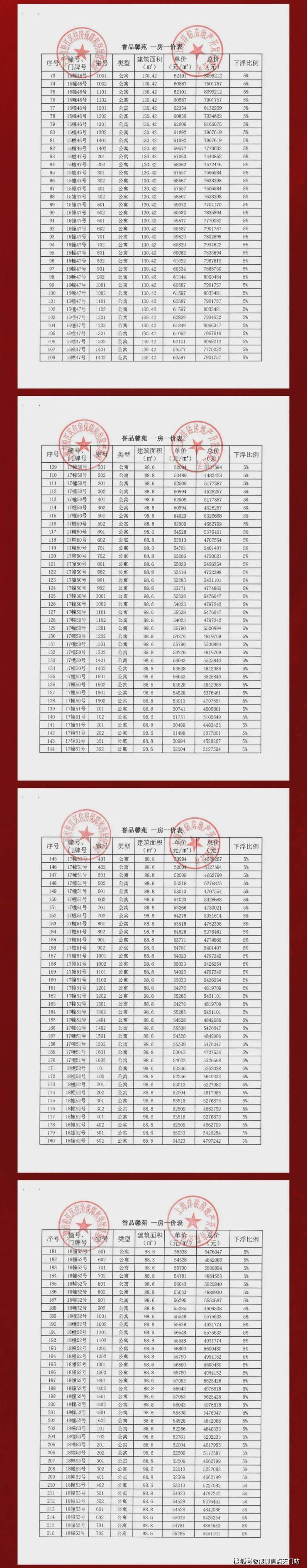 一房一价表如下: