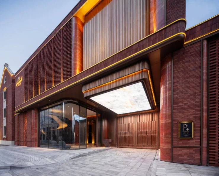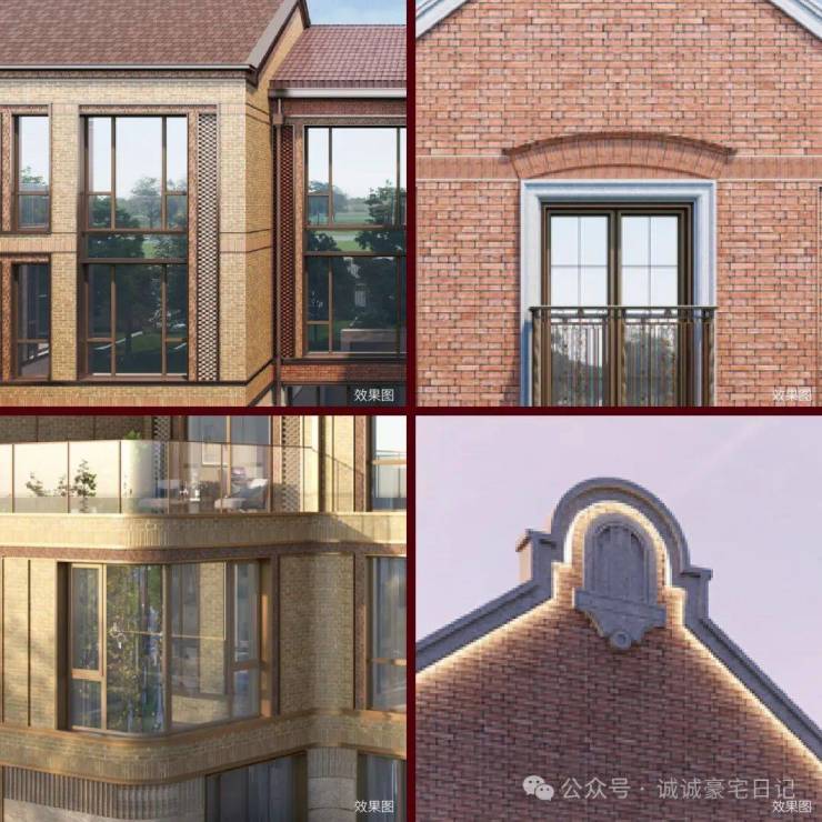 例如,在社区入户,目前已经完美呈现出来的,有强烈视觉冲击的立面大量的红砖、红洞石及大面积的落地弧形玻璃搭配的相得益彰,整个门头既有厚重的历史感,又不失极简主义的现代美。