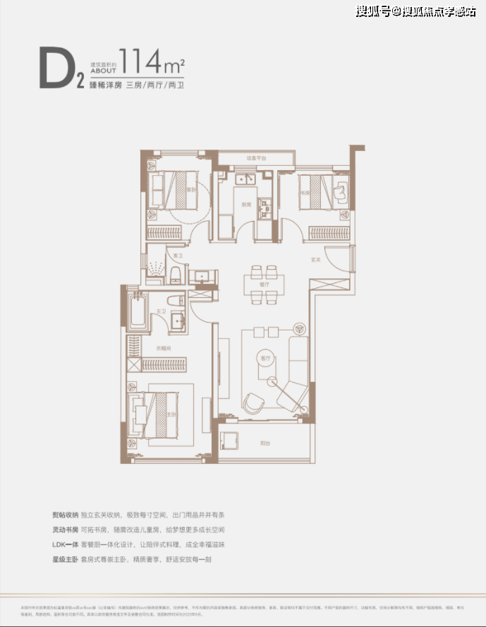 建面约140㎡四房:三开间朝南户型,南北通透,采光条件优质,客厅明亮宽敞,彰显大气布局。