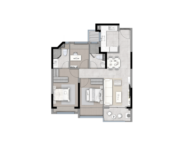 在整个西虹桥,80+㎡的户型大都只做到2房功能性。但国贸鹭原却直接实现了3房功能性,让总价约400万级自住客户一步到位,让资产配置客户未来在二手市场具备降维打击般的优势!