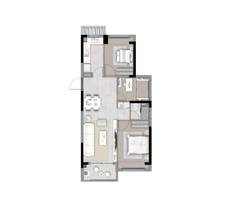 项目约96㎡户型实现了3房+主卧套房设计,功能性和舒适度兼备。