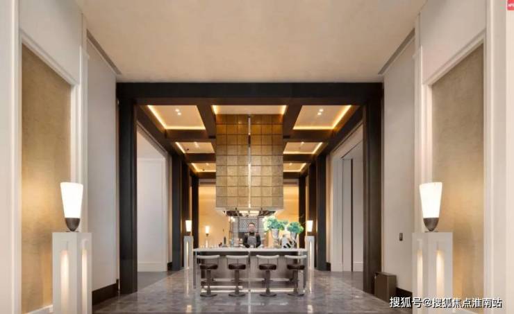 建面约190㎡ C户型,两梯两户,私享梯厅,家的玄关尺度,延伸至电梯厅,增加实际使用面积。入户处大师定制瓷板门牌画,私属感满满,打造专属归家仪制。