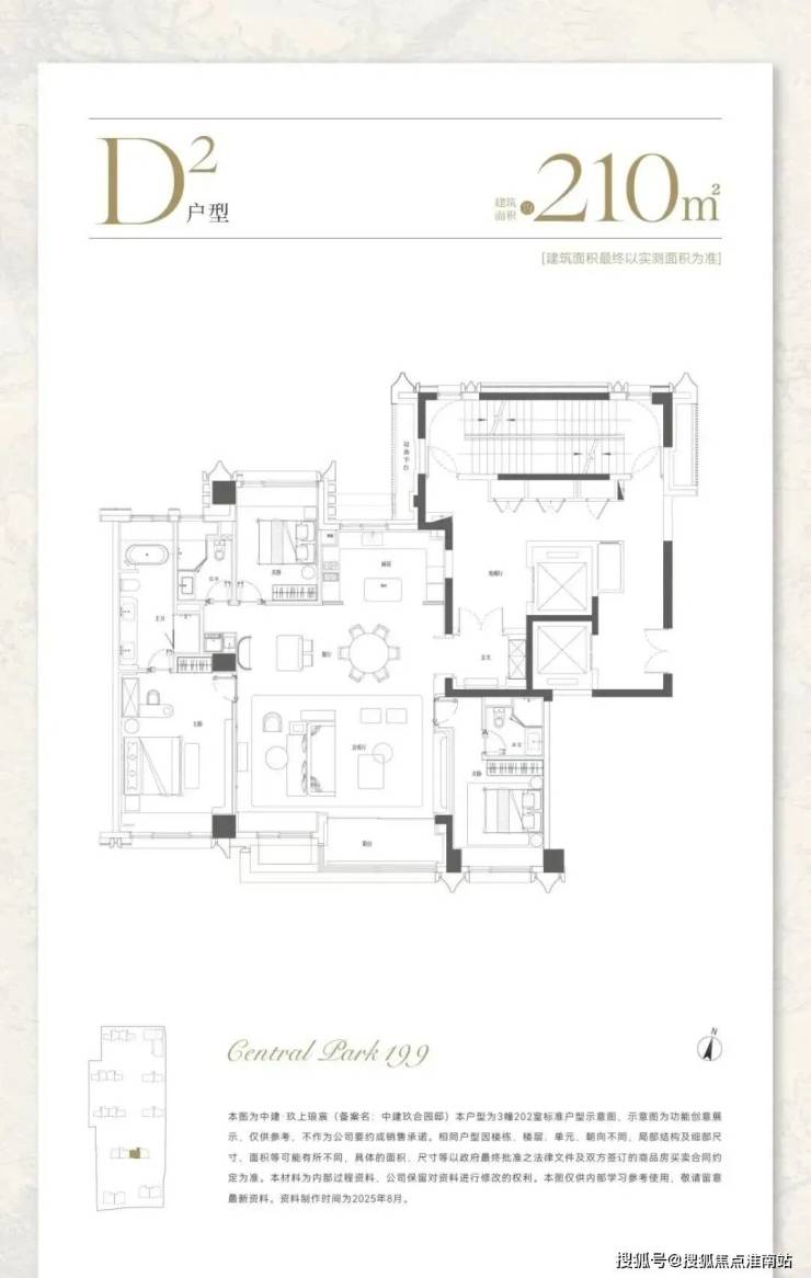建面约210㎡,分为中间套与边套产品: