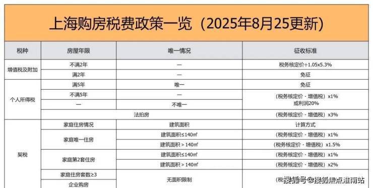 三、上海2025年8月最新购房税费政策