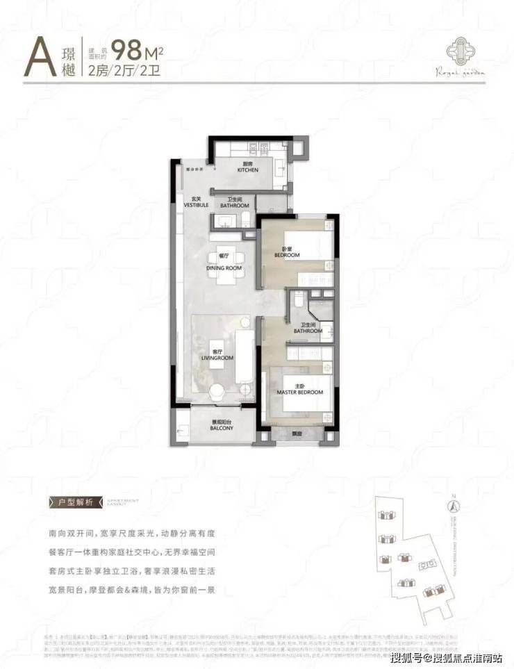 建面约98㎡宽阔两房,非常适合单身或是年轻的小家庭置业。其得房率最高约79%,相较于市面上大多70-75%的项目,实实在在地省下了不少空间的置业成本!