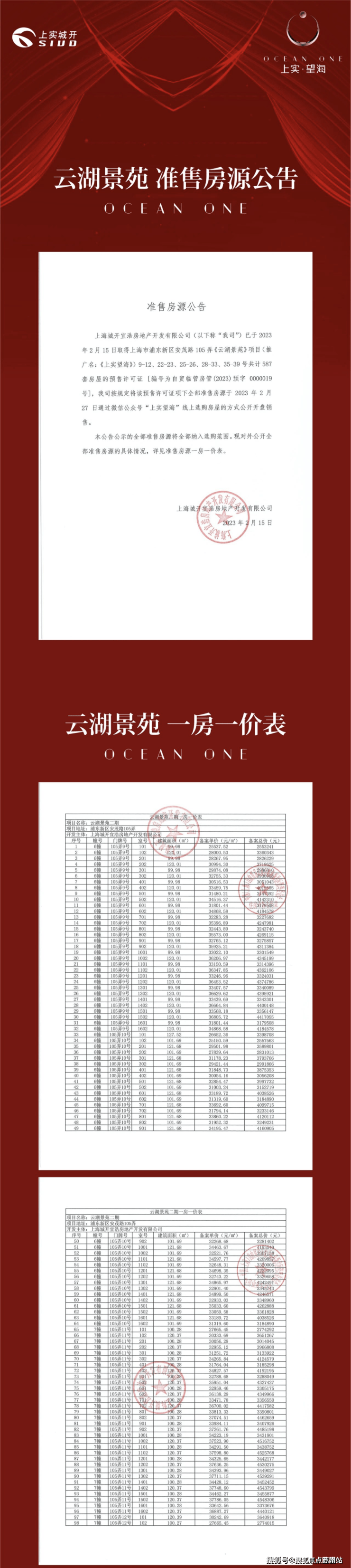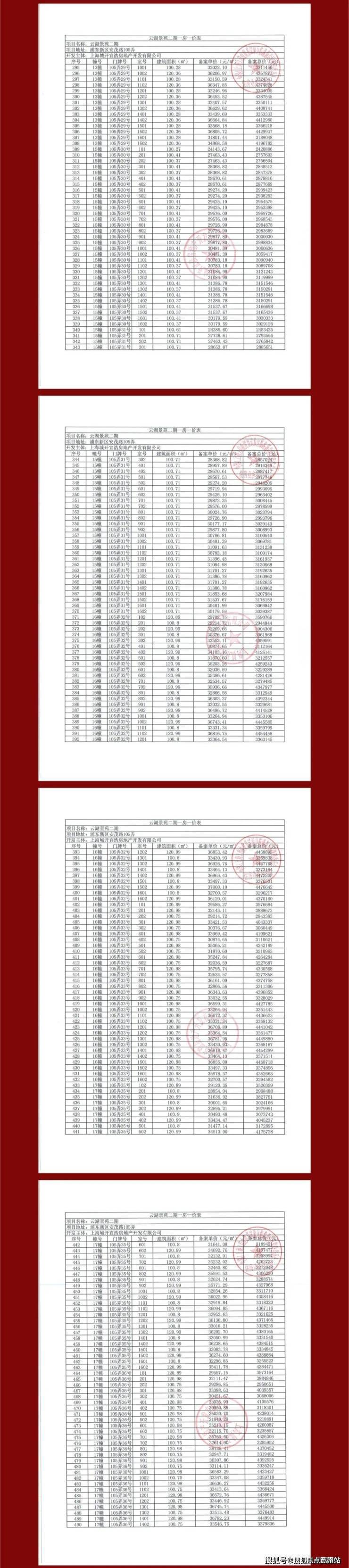 「上实望海」一房一价表