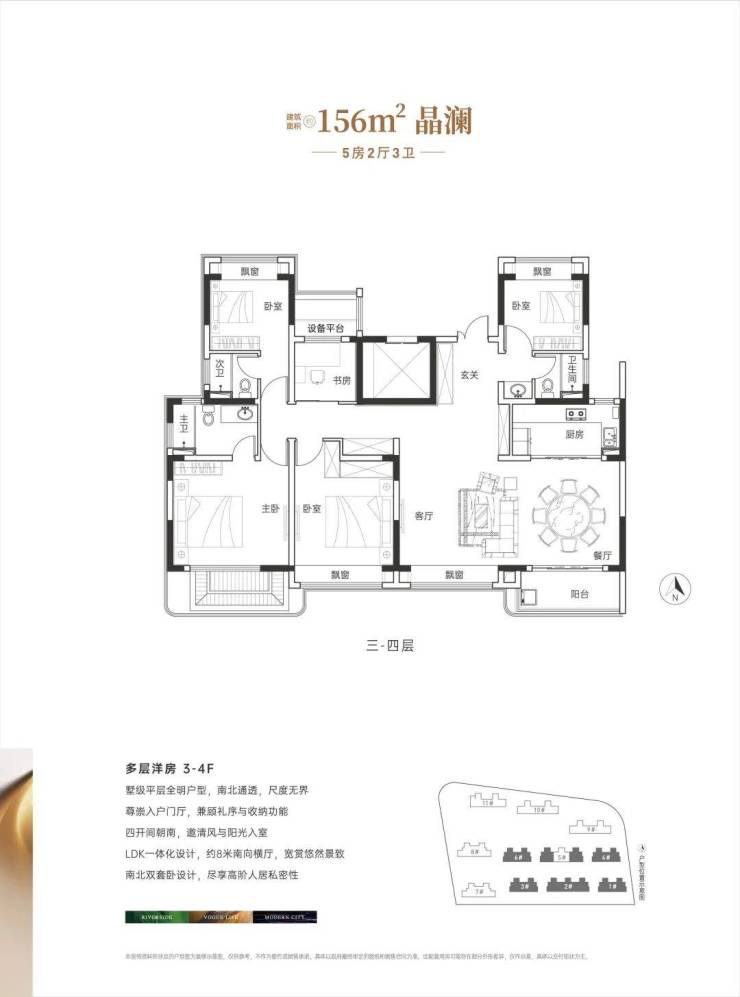 建面约156㎡洋房户型图▼【奉发右岸晶邸】售楼处电话:400-8855-420【☎售楼处已认证】