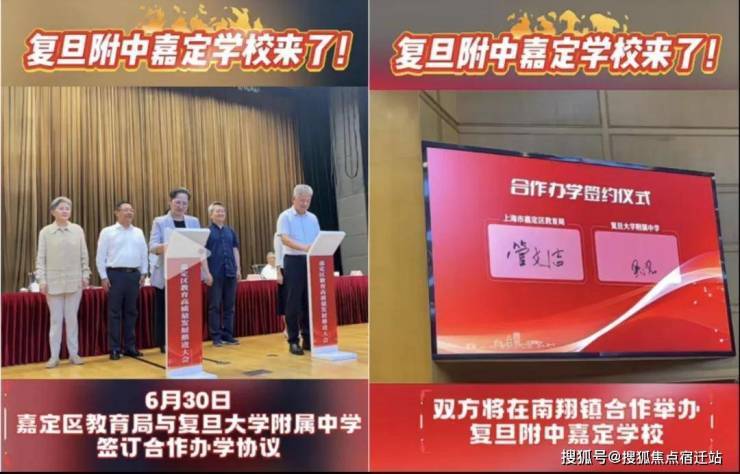 6月30日,嘉定区教育局与复旦附中签订合作办学协议,双方将在南翔镇举办复旦附中嘉定学校!