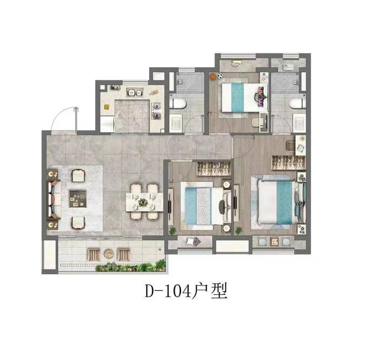 四开间朝南+主卧套房设计+全卧室带飘窗+南北通透+超大的宽面阳台,做出了拥有120㎡以上户型的尺度感和舒适度。如果预算合适,这个户型绝对推荐。
