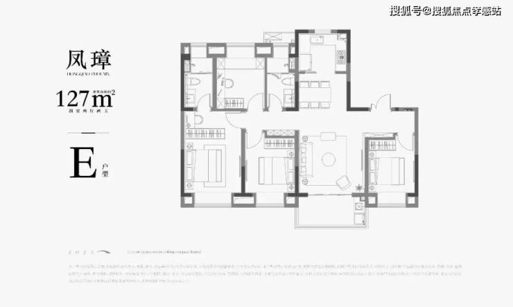 ♓️ 中交凤启虹桥售楼处热线☎️☎️:400-9966-940✔️✔️ E户型 | 建面约127㎡4房户型图▼