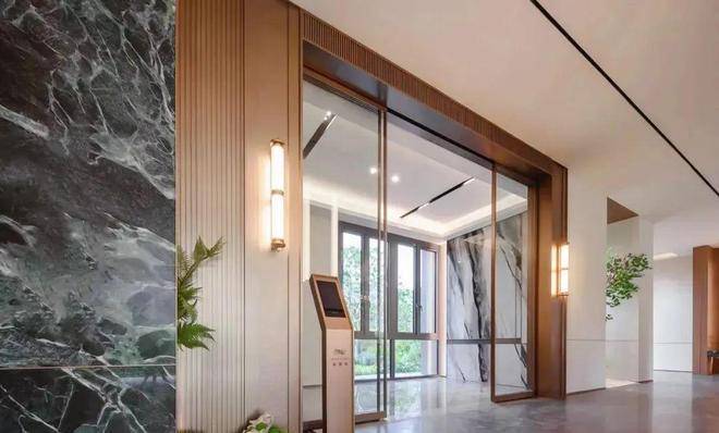 第一进:星级酒店的入户门头搭配入户水景,✅✅大家映翠府售楼处电话:400-8787-740✅✅让入户更具仪式感、同时通过院内布景的遮挡,让小区内部景观增添一抹神秘感;