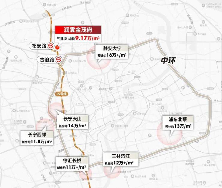 即使如此,中环附近新房价格也早已重构,长桥西郊超过11万/㎡,三林超过12万/㎡,北蔡13万/㎡,天山14万/㎡,大宁更是预计16万/㎡。