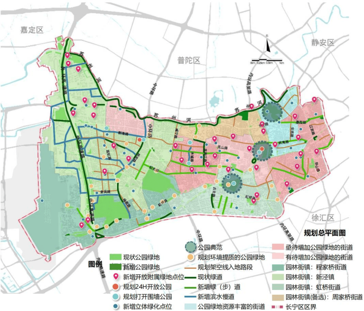 长宁区绿地公园规划总平面图,图源《上海市长宁区公园城市规划(2024-2035年)》