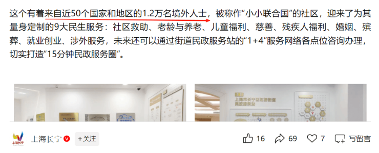 1986年,上海第一个大型高标准国际居住区古北新区兴建,直至今日,吸引了来自欧美及港台、日韩等 近50个国家和地区的1.2万名外籍人士,素有“小小联合国”之称,很多境外人士最初也是通过古北认识上海。(数据来源:上海长宁)