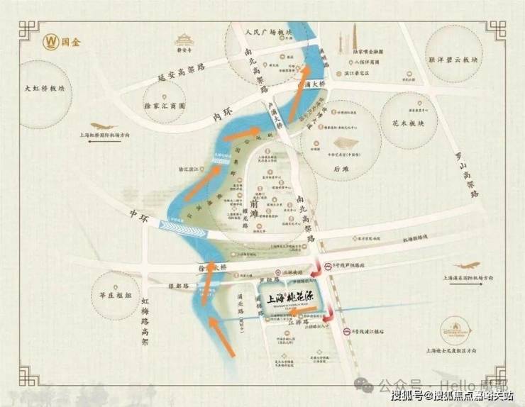 「上海桃花源」位于浦东的闵行区浦江街道,是前滩板块旁的首席配套居住区,开车听两首歌的时间就能到前滩,再听一会FM101.7上海流行音乐广播就能到达人民广场、南京西路、百年外滩、陆家嘴国金中心、淮海路IFC、新天地商圈、联洋碧云国际社区、徐家汇恒隆广场,可以说是融合浦西浦东真正精华的地段!