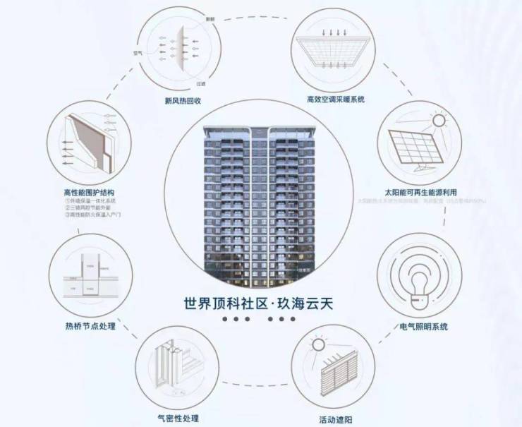 8大超低能耗技术(通过外墙、屋面、门窗优异的保温隔热性能,结合具有高效热回收功能的新风系统的运作,使四季的室温维持在人体适宜的温度)之外,增加户式新风系统、高效VRV空调、局部太阳能热水系统、超低能耗围护结构、雨水回用系统、自动微喷灌系统、海绵城市等技术,使项目达到国际绿色建筑更高标准:绿建三星级(住建部考核审定认证),领衔时代健康、理想人居。