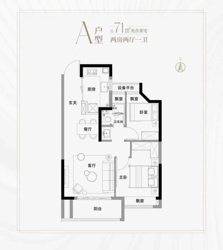 高层建面约71㎡2房2厅1卫