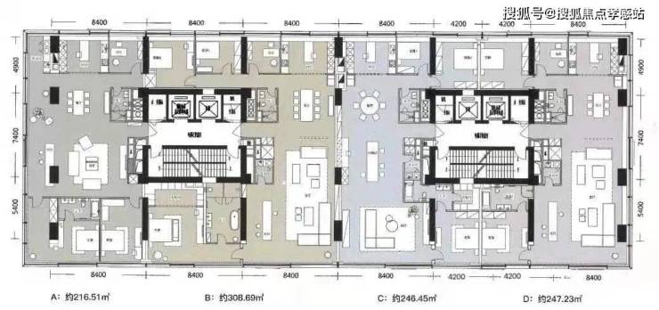 • 面 积:200.96㎡-𝟐𝟓𝟎.𝟏𝟒㎡(交付三房两厅三卫)