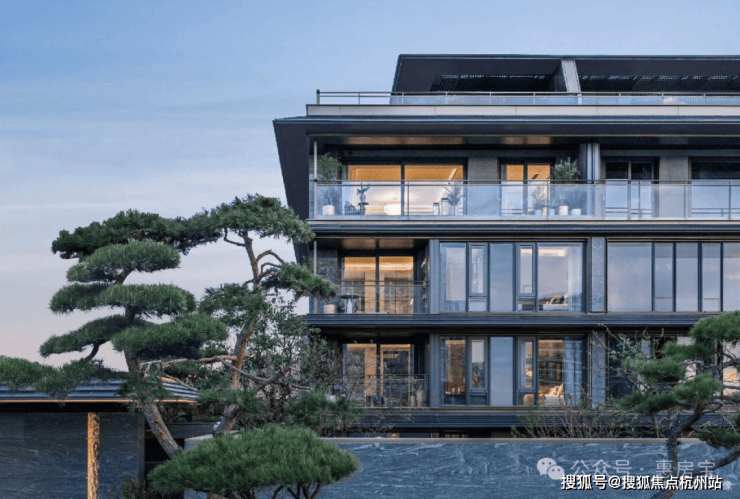 在建筑上,绿城·逸庐沿用庐系“现代形,东方意”的内核。小高层以金色线条勾勒挺拔轮廓,大面玻璃搭配轻盈檐角,既有东方风骨,又具摩登质感:叠墅区则强调“东方屋檐下的院落感”通透立面搭配简约线条让阳光与清风自由穿梭,勾勒出“飘逸东方之美”