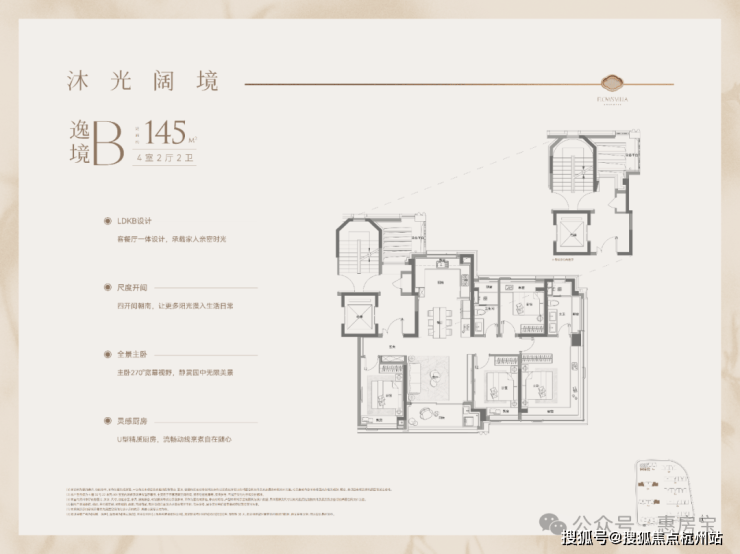 建面约145㎡户型以270°转角飘寄搭配超高窗墙比解锁超广角视野,将无限景致“拉”至眼前。城市的璀璨天际、静逸的河景、灵动的山水庭园,点亮窗前,让生活的每一刻都浸润在自然与开阔之中。