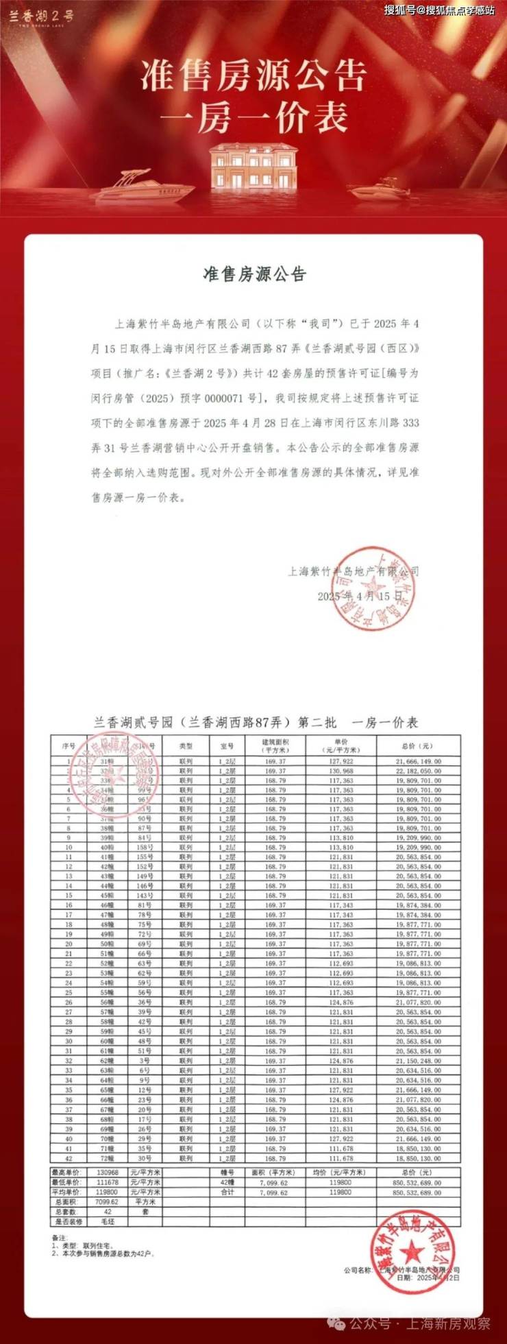 最新消息!闵行紫竹「兰香湖贰号」售楼处24小时电话:400-8855-420✌✌✔✔西区二批次均价11.98万/㎡;42套170户型的最后一批房源!已于4.28开盘销售,剩最后7席!项目本身容积率仅约0.6,是闵行滨江第一个游艇豪宅,全屋精装交付,均为国际一线大牌,堪称豪宅典范;花园面积:70-120㎡(除特殊户型外,每户均带水岸码头!
