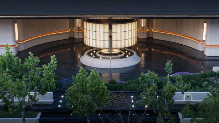 招商序借鉴伦敦TheWhiteley酒店,打造中央车站,将自然场景和室内设计彼此交融,形成具有仪式感的车行落客。