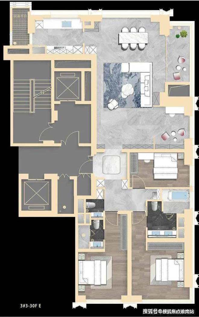3号楼户型图:95(14套)、198、219、237、280、400平(顶复)